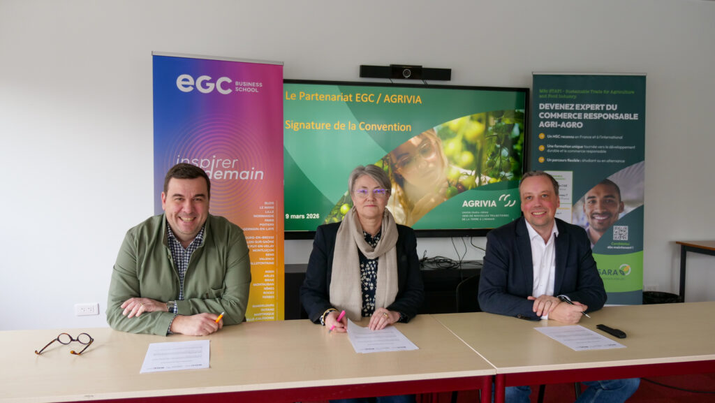 L’accord a été signé par Jérôme ZLATOFF, directeur général d’AGRIVIA, David BARTHE, Directeur général de l’EGC Business School et Florence BARTHOMEUF, directrice de l’EGC Centre-Est. Il marque une nouvelle étape dans le rapprochement entre formations commerciales et secteurs agri-agro, dans un contexte de transformation des filières et d’évolution des compétences attendues par les entreprises.