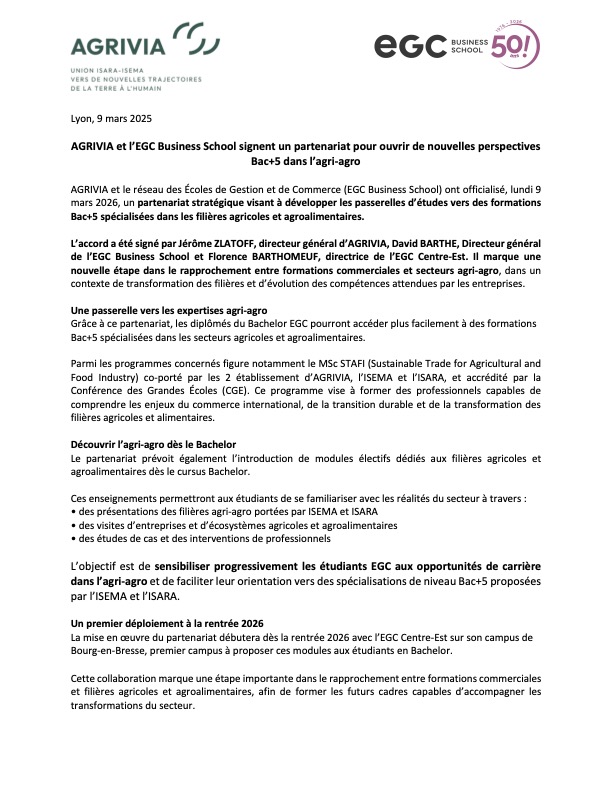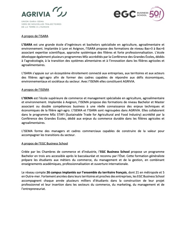 Partenariat EGC Business School / Agrivia Union ISARA ISEMA